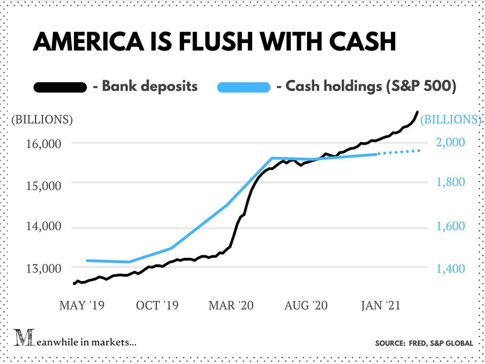 Now, investors are hoping that part of this pile will rain down on the economy once Covid is over.